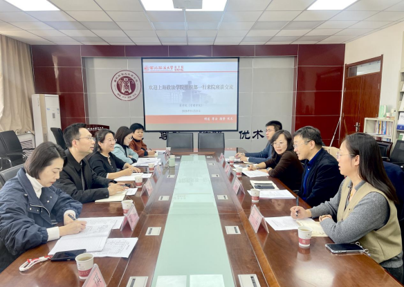 赵参对上海政法学院组织部一行表示热烈欢迎,并从学院党组织设置、党建“双创”、支部系部建设、特色品牌创建等方面,介绍学院党建与事业融合发展情况。院长李晓宁介绍了学院办学历史以及学科专业布局、师资队伍建设、人才培养等方面取得的突出成效。副院长、财务审计系党支部书记冯颖、工商管理教学部党支部书记赵杭莉,分别围绕样板支部、“双带头人”党支部书记工作室建设,介绍思路举措、主要做法和进展成效。