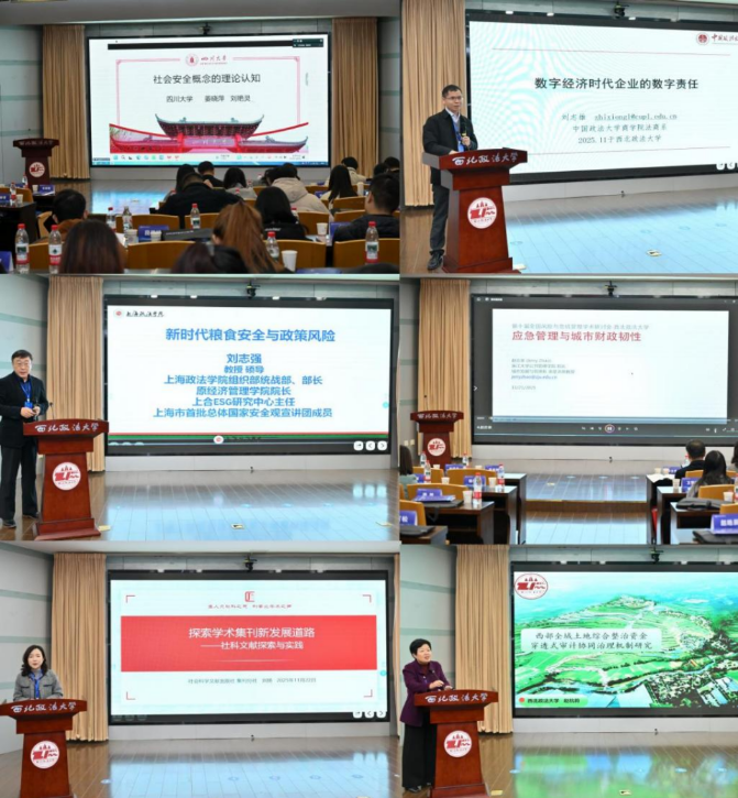 会议的主题报告阶段,分别由棋牌平台 院长李晓宁、副院长杨柳青主持。四川大学城市治理研究院院长姜晓萍教授作题为《社会安全概念的理论认知》主题报告;中国政法大学棋牌平台 副院长刘志雄教授作题为《数字经济时代企业的数字责任》主题报告;上海政法学院党委常委刘志强教授作题为《新时代粮食安全与政策风险》主题报告;浙江大学公共管理学院院长赵志荣教授作题为《城市财政韧性和地方债务管理》主题报告;社会科学文献出版社刘扬编辑作题为《探索学术集刊新发展道路》主题报告;西北政法大学赵杭莉教授作题为《西部全域土地综合整治资金穿透式审计协同治理机制研究》主题报告。