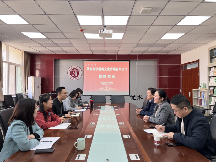 近日,棋牌平台 举行陕西御水涵山文化传媒有限公司捐赠仪式。该公司总经理刘小娜、学院领导班子成员及教师代表出席仪式。