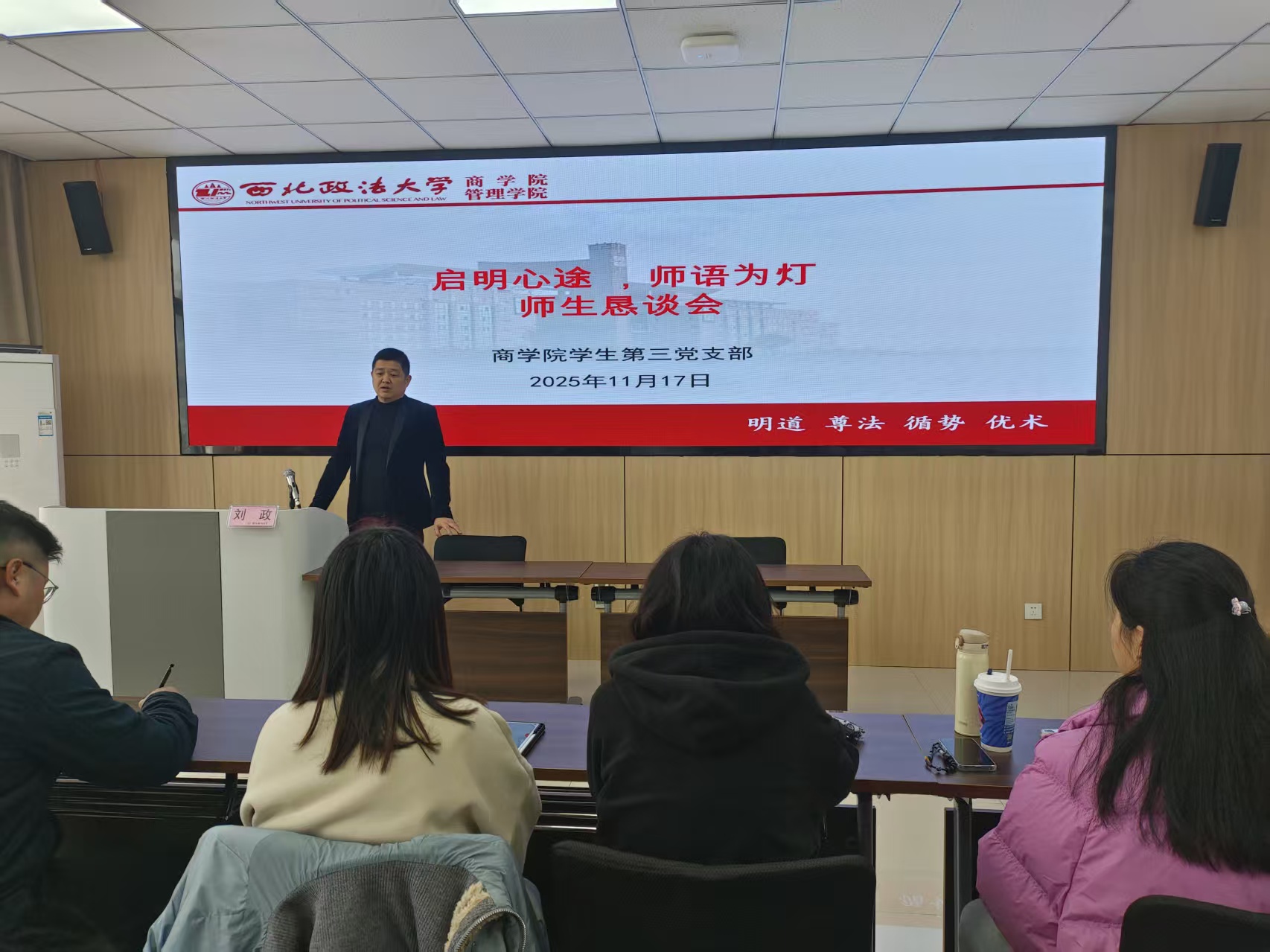11月17日,十大棋牌平台推荐 学生第三党支部成功开展“启明心途,师语为灯”师生恳谈会。本次活动特邀刘政老师担任嘉宾,与支部党员及入党积极分子围绕“有为才能有位、有位更好作为、有为才能有位、有位更要作为”的核心主题展开深度交流。