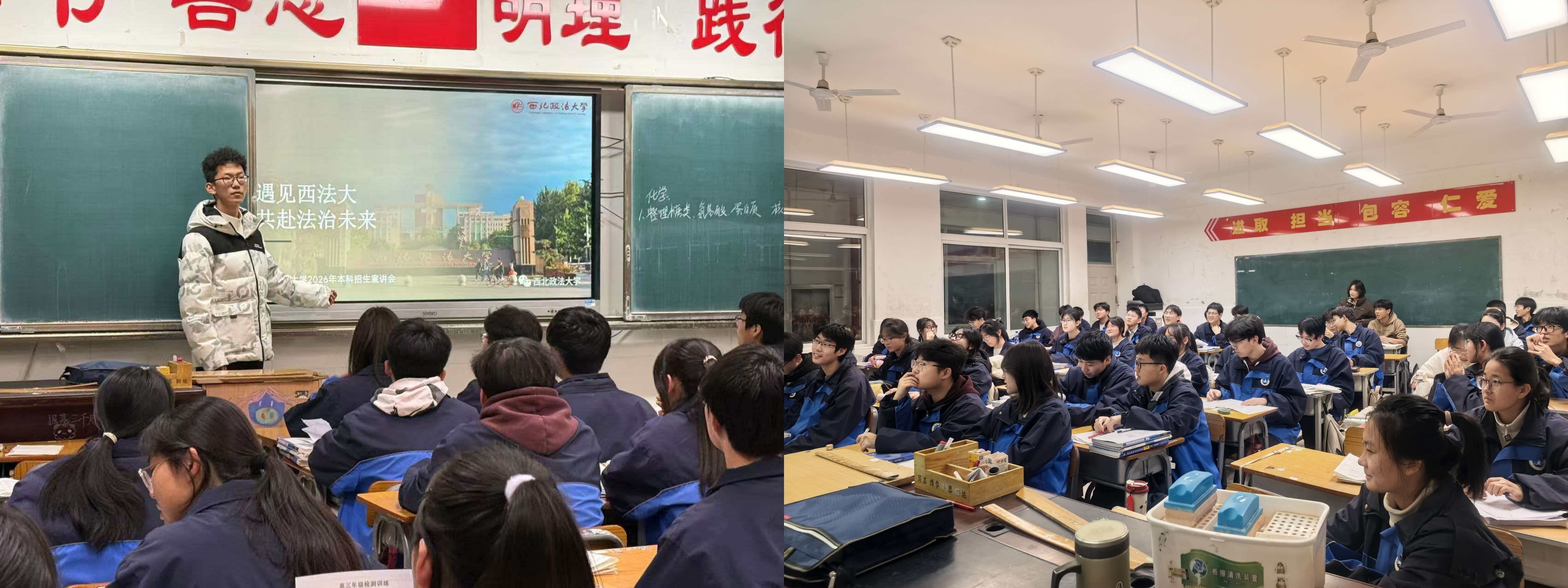 此次寒假回访母校宣讲活动,不仅是西北政法大学学子感恩母校、展示风采的实践,更是一次成功的招生宣传与大学文化传播,进一步帮助广大高中学子更好地了解大学生活、明确学业目标。参与宣讲的学子们也在沟通中磨砺才干,在分享中深化认同,将爱校荣校之情转化为脚踏实地的行动,将服务社会的初心熔铸于一言一行,书写了润物无声而又意义深远的教育篇章。