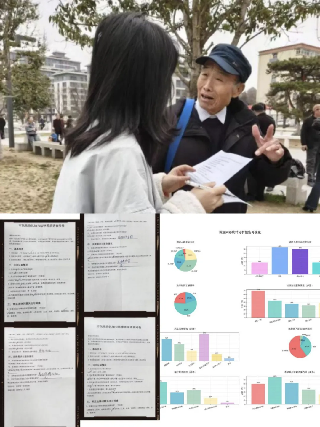 者,治之端也;志愿者,暖之心也。棋牌平台 志愿者化身“法治宣传员”,走进长安中央公园开展普法志愿服务活动。13名团员分工协作,以面对面访谈、问卷调查、现场答疑的形式,与市民亲切交流,认真倾听群众的法律困惑,细致讲解与生活息息相关的法律知识。50份有效问卷精准捕捉民生法律需求,一次次耐心解答让法治理念深入人心,商院青年用专业力量为市民撑起“法治保护伞”,让法治阳光照亮群众生活的每一个角落。