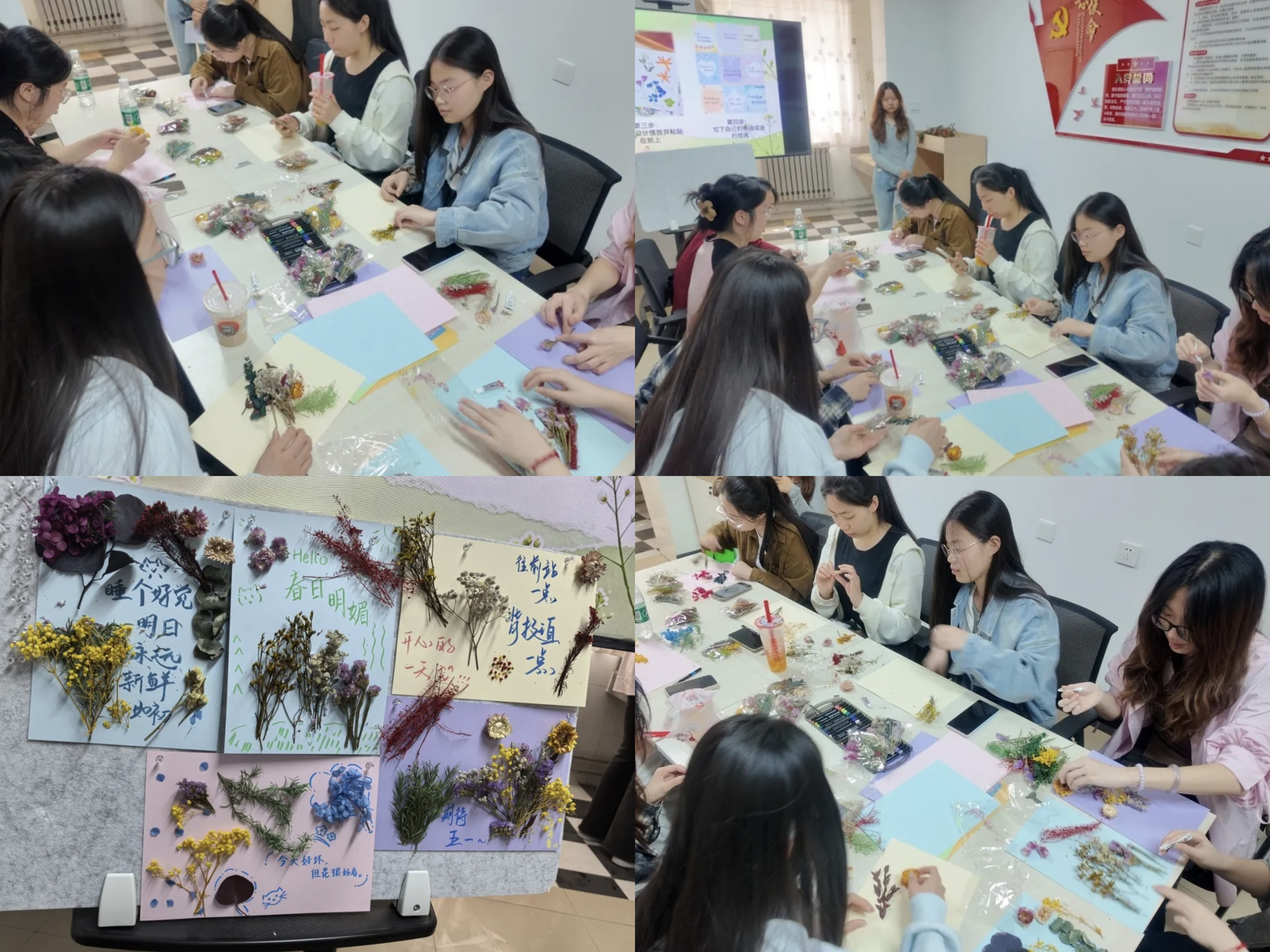 为舒缓大学生心理压力,传递自然疗愈之力,4月24日,棋牌平台 “商苑”工作室在“一站式”学生社区举办“草木心语 拼贴春光”心理主题活动。本次活动以自然与艺术为载体,引导学生在动手创作中释放压力、舒缓身心,在春光里实现自我治愈。
