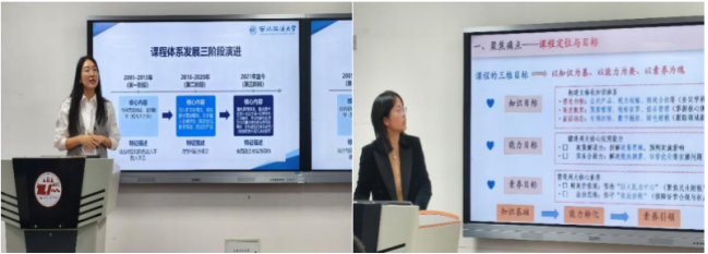 本次赛事设置了新文科、课程思政和基础课程三个参赛类别。比赛中,10名参赛教师凭借别出心裁的教学设计、丰富多样的教学方法以及生动精彩的讲解,充分展示了新时代教师过硬的教学功底。三位评委老师一一对参赛教师们进行了细致点评,并从课程目标、教学定位、教学设计、比赛准备等多个方面提出了宝贵的意见和建议。