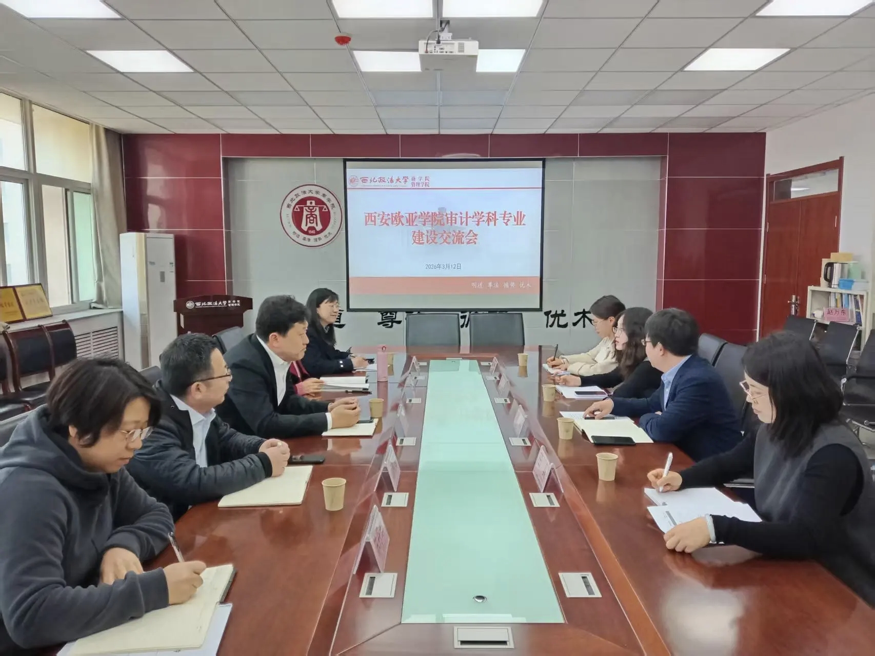 3月12日上午,西安欧亚学院会计金融学院院长谢涛、审计学专业主理人贺鸣、课程组组长田真、专职教师宋歌一行四人来棋牌平台 就审计学科专业建设调研交流,棋牌平台 院长徐京平、副院长杨柳青,财务审计系主任李普玲、副主任张瑛、参会。双方围绕审计学科建设、人才培养模式创新、共建师资互访与教学科研平台及校际合作等议题进行了深入座谈。