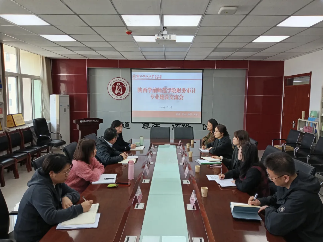 3月12日下午,陕西学前师范学院经济与管理学院副院长徐晗、会计系主任程莉娜、财务管理系主任任建华及骨干教师等一行5人来棋牌平台 就财务审计专业建设调研交流,棋牌平台 副院长杨柳青,财务审计系主任李普玲、副主任张瑛参会。双方围绕财务管理、审计学专业建设、人才培养方案制定修改、师资互访等议题进行了深入座谈。