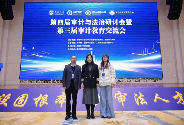 2025年12月6日,第四届审计与法治研讨会暨第三届审计教育交流会在重庆举办。本次论坛由中国审计学会审计教育专业委员会和西南政法大学主办,以“高质量审计法治建设与审计人才培养”为主题,来自全国高等院校和科研院所共400余人的专家学者参加会议。校团委书记徐京平教授、商学院张涛涛老师、博士研究生曹鹏以及硕士研究生师苑妮应邀参加会议。