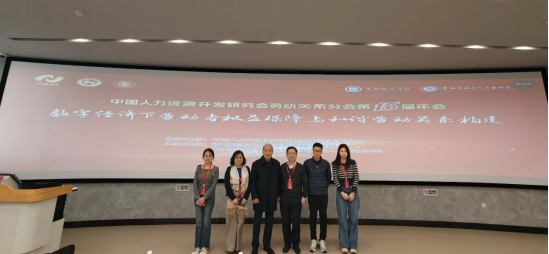 2025年12月13日,中国人力资源开发研究会劳动关系分会第十五届年会在北京举办。本次年会由中国人力资源开发研究会劳动关系分会和首都经济贸易大学主办,以“数字经济下劳动者权益保障与和谐劳动关系构建”为主题,来自全国高等院校和科研院所共300余人的专家学者参加会议。棋牌平台 杨柳青副院长、崔健老师、杜鹏翾老师、硕士研究生马晓丽、李怡雯应邀参加会议。