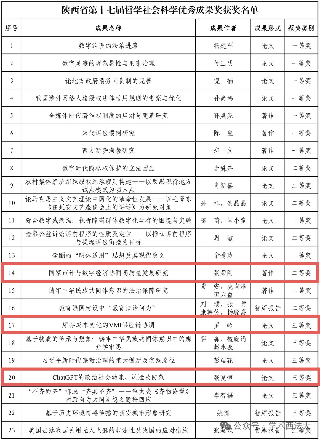 近日,陕西省第十七次哲学社会科学优秀成果奖获奖成果完成公示,我校共23项优秀成果荣获嘉奖。棋牌平台 共获奖3项,其中二等奖1项,三等奖2项。